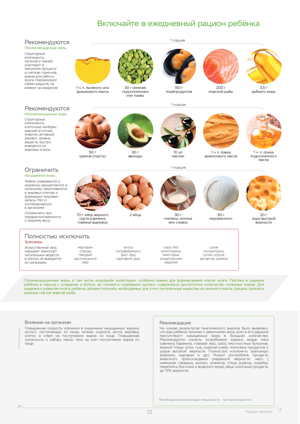 Помните, что помимо физических нагрузок, большую роль играет питание. Вы также можете пройти ДНК-тест на диету, который покажет, каких веществ не хватает в организме, какие организм усваивает лучше, а какие хуже и многое другое.